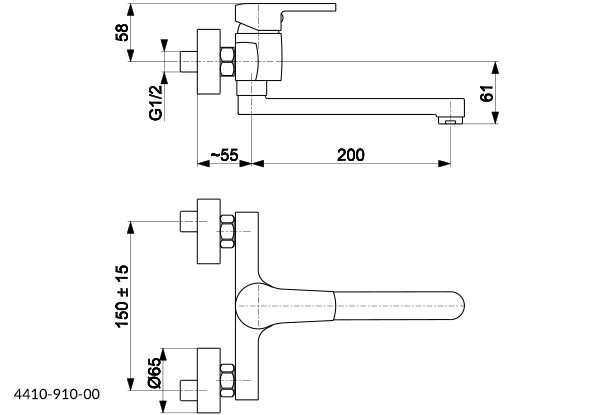 Nástenná drezová batéria SELEN od výrobcu KFA ARMATUR A s rozstupom 150 mm. Výhodou je otočné ramienko s dĺžkou 200 mm a perlátorom.