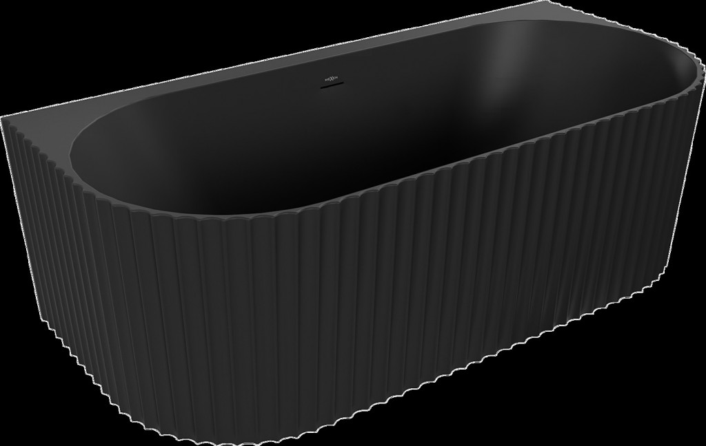 Voľne stojaca oválna akrylátová vaňa s inštaláciou k stene série SELLA od výrobcu MEXEN s prepadom a umiestnenom odpade na strede vane. Má moderný dizajn s hladkým povrchom a zvlneným reliéfom po stranách.