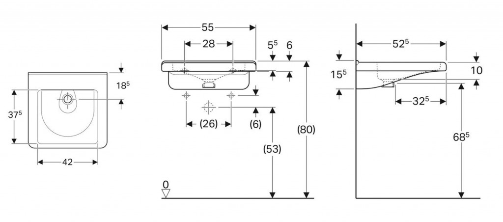 - rozmer umývadla 550 x 525 x 155 mm