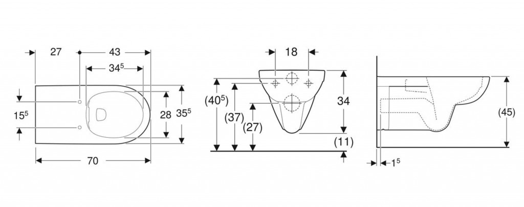 - keramické skosenie zabraňujúce skĺznutiu WC sedátka na stranu