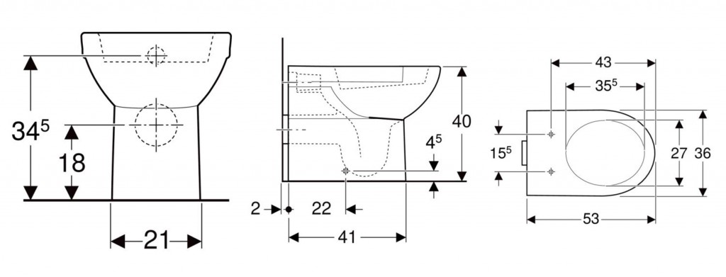 WC Selnova stojaca na podlahe, vzadu rovný k stene, čiastočne uzavretý tvar