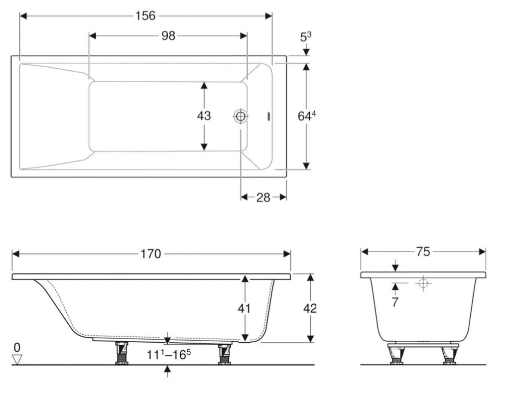 - pre montáž pomocou nožičiek pre vane alebo stenových kotiev