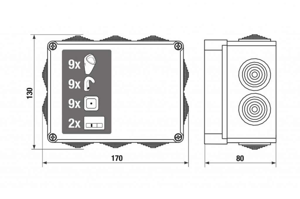 - rozmery 170 x 130 x 80 mm