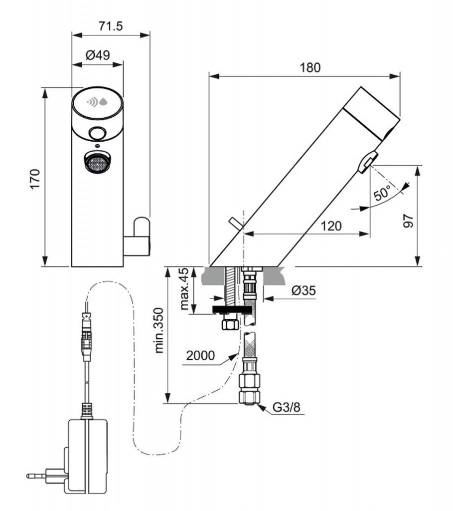 - integrovaný infračervený senzor Zapnuté-Vypnuté so selonoid ventilom inštalovaným v armatúre