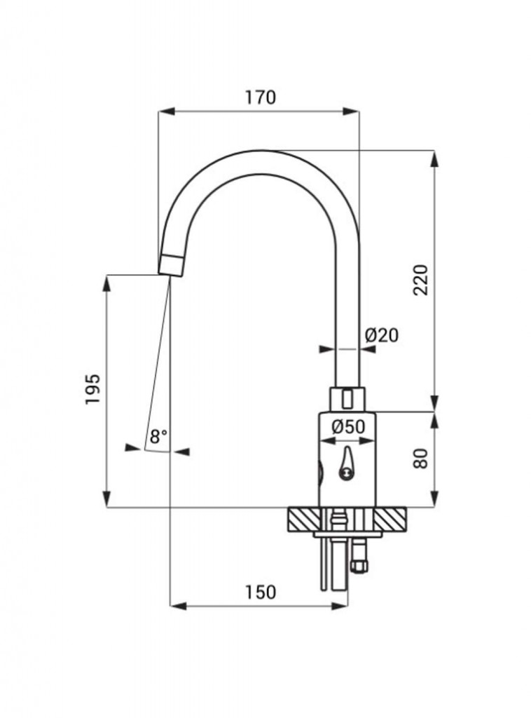 - reaguje na prítomnosť rúk v snímanej zóne okamžitým spustením vody
