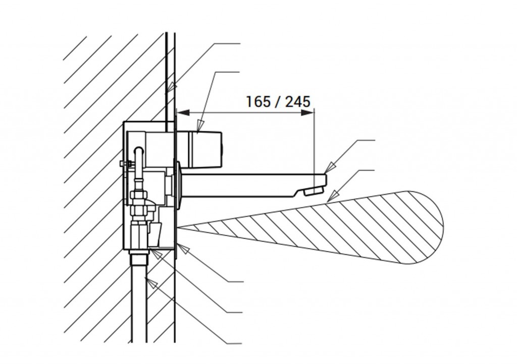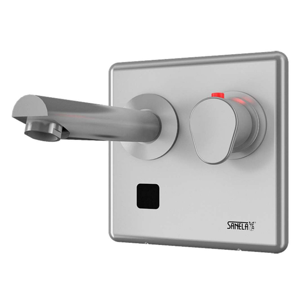reaguje na prítomnosť rúk v snímanej zóne do vzdialenosti 0,3 m od snímača okamžitým spustením vody