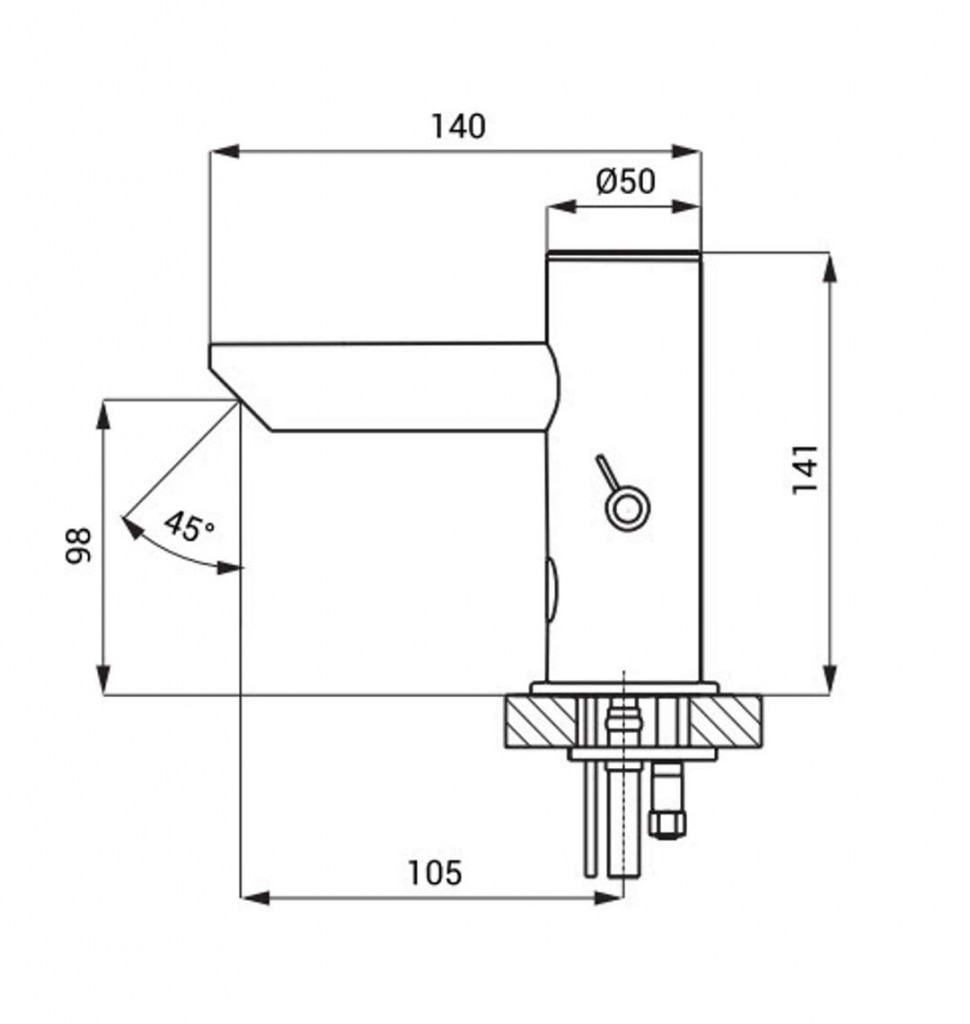 Nerezová automatická umývadlová zmiešavacia batéria s elektronikou ALS pre napájanie z batérie 6