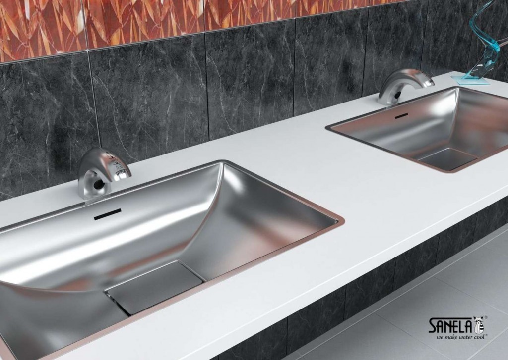 batéria SLU 01NH je stojanková automatická umývadlová batéria určená pre pripojenie k ohrievaču pod umývadlom, reaguje na prítomnosť rúk v snímanej zóne do vzdialenosti 0,3 m od snímača okamžitým spustením vody