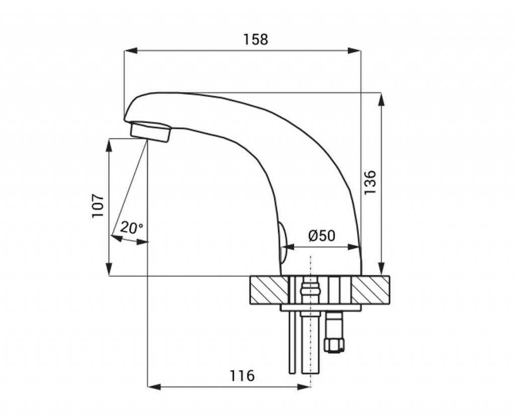 reaguje na prítomnosť rúk v snímanej zóne do vzdialenosti 0,3 m od snímača okamžitým spustením vody