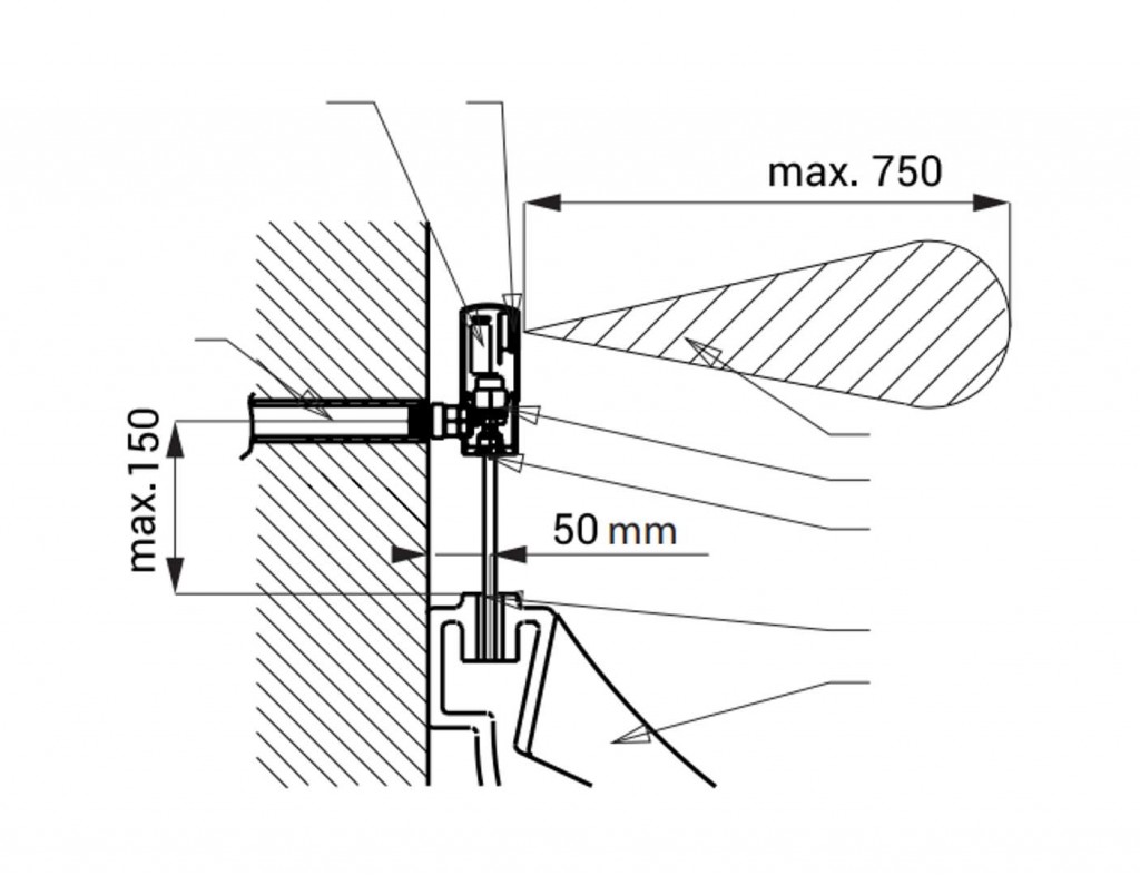 - reaguje na prítomnosť osoby pred pisoárom vo vzdialenosti max 0,7 m od snímača po dobu dlhšiu ako 7,5 s
