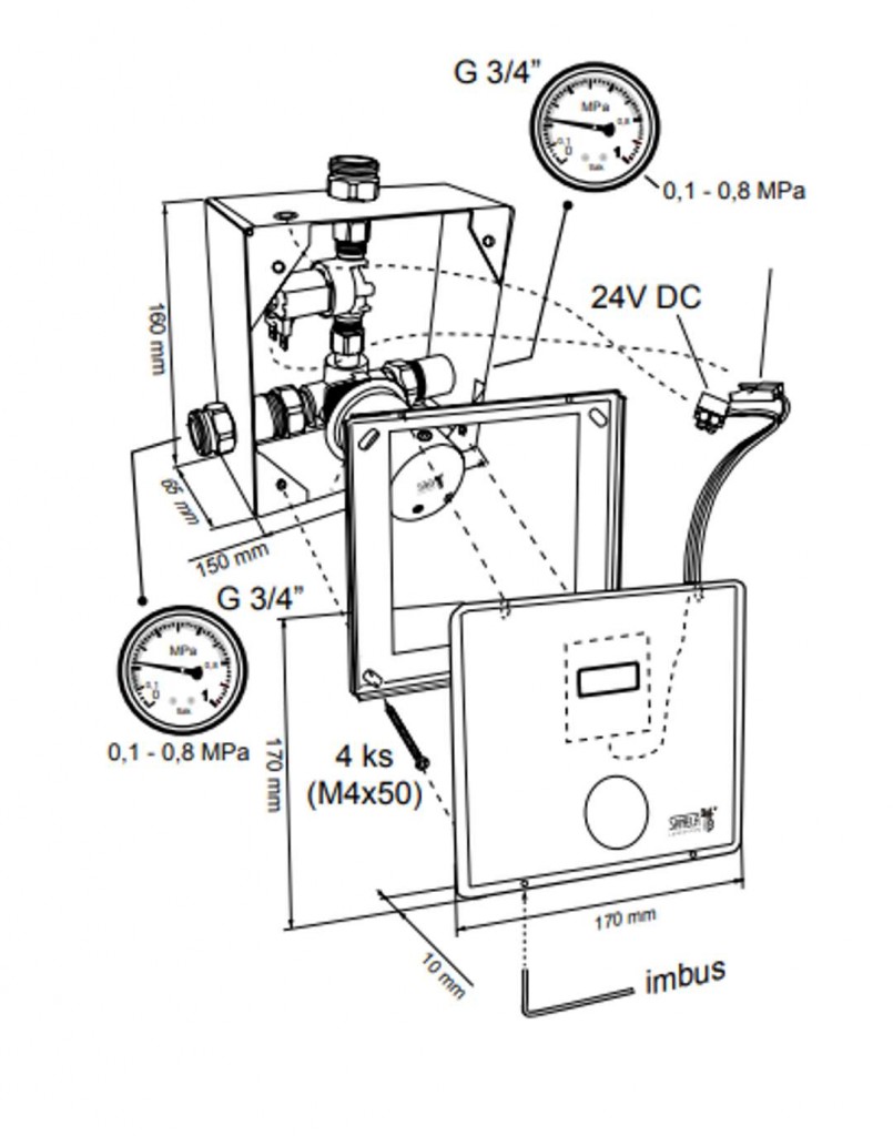 nerezový kryt s elektronikou pre batériové napájanie, nerezová inštalačná krabica so zabudovaným elektromagnetickým ventilom, miešacie batérií a šróbením, vrátane napájacej batérie
