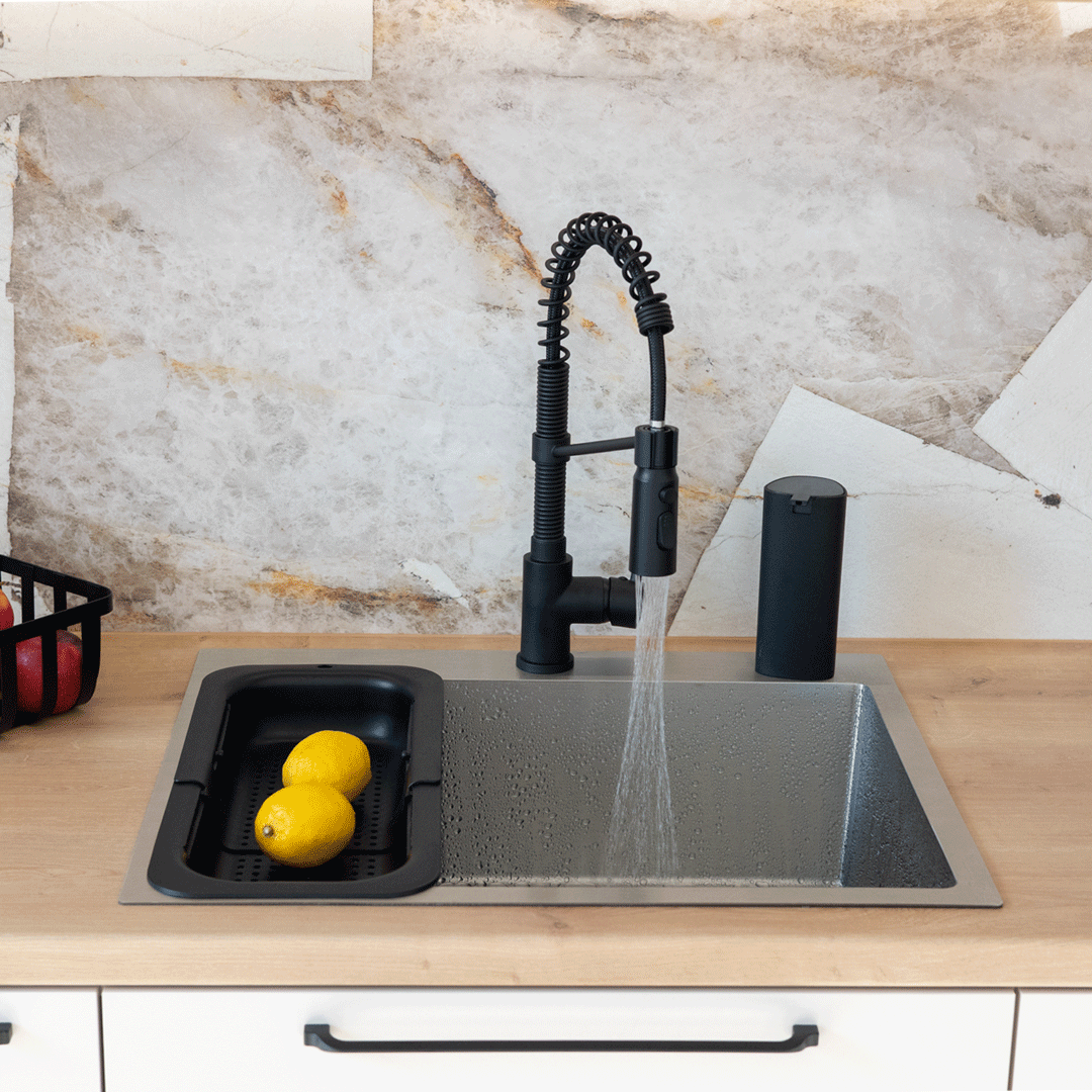 Vďaka pružinovému flexibilnému výtoku získate plnú kontrolu nad prúdom vody a úplnú voľnosť pohybu. Oplachovanie, plnenie vysokých nádob alebo umývanie veľkého riadu sa tak stáva jednoduchšie, rýchlejšie a pohodlnejšie.