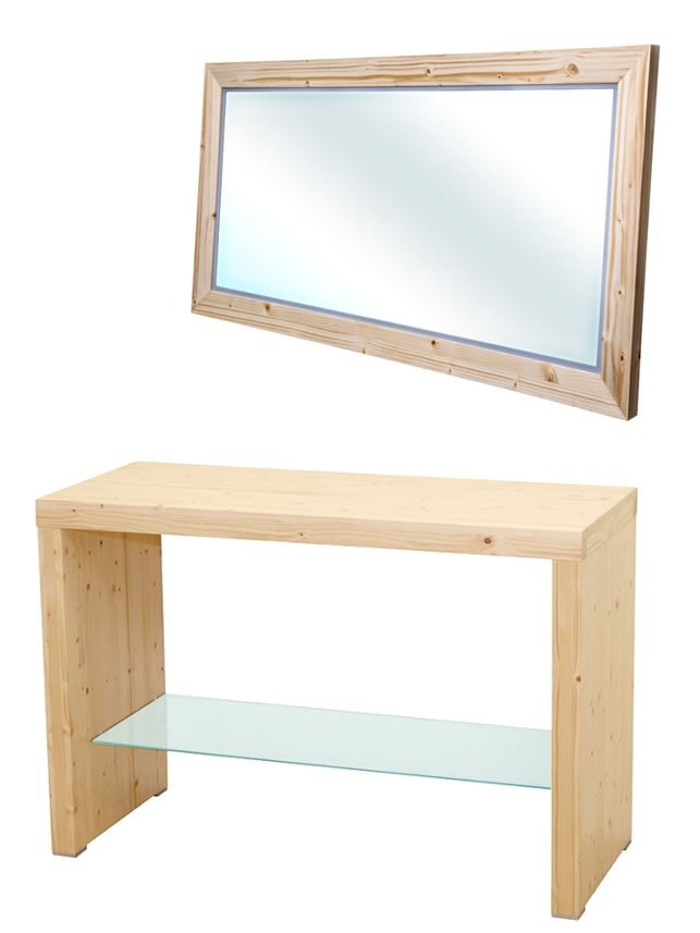 Bern stôl masív smrek natur lak šírka 120, určený pre umývadlá s montážou na dosku.
