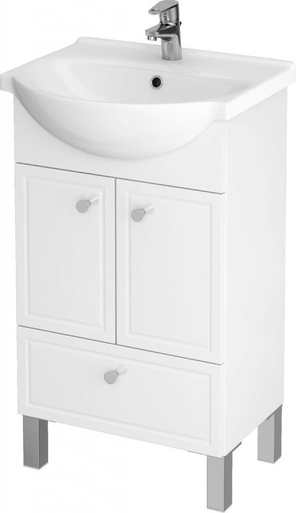 Stojaci umavadlová skrinka v bielom prevedení s dvoma dvierkami a jedným Šuplata vrátane umývadla.