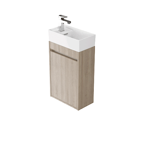 Súčasťou zostavy je závesná umývadlová skrinka CREA 40 s nábytkovým umývadlom CREA 40 s prepadom a otvorom na armatúru. Čelo a korpus skrinky sú vyrobené z vlhkovzdornej drevotrieskovej dosky s modernou technológiou AQUASAFE. Skriňka je vybavená systémom otvárania citlivým na dotyk (tzv. PUSH SYSTEM). Šedá štruktúra ľanu vo vnútri skrinky dodáva výrobku elegantný vzhľad. Umývadlo CREA je vyrobené z keramickej hmoty ROCKLITE, vďaka čomu je prekvapivo odolné, ľahké a s extrémne tenkými stenami.