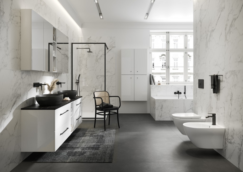 Kolekcia ďalej zahŕňa kúpeľňové armatúry: bidetové, sprchové, vaňové a sprchové batérie, ďalej batérie na nábytok a umývadlá na dosku. Medzi vodovodnými batériami si môžete vybrať variant v módnej čiernej alebo matne zlatej, alebo klasický lesklý chróm.