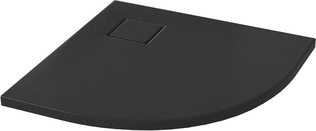 Sprchová štvrťkruhová vanička TAKO SLIM čierna s matnou štruktúrou vyrobená z najkvalitnejšieho akrylátu najvyššej kvality vrátane sifónu. Estetická, magnetická vypúšťacia zátka vo farbe sprchovej vaničky vytvára hladký povrch, ktorý sa ľahko čistí.