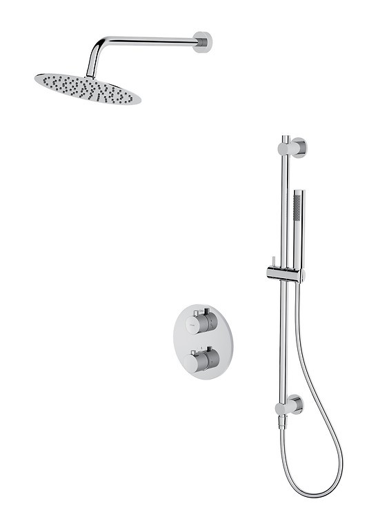 Podomietkový sprchový set z kolekcie ZEN by Cersanit je kompletným riešením pre každú kúpeľňu. Podomietková sprchová batéria je zariadenie, ktoré slúži na reguláciu teploty vody v kúpeľni alebo sprche. Vybavená je 35 mm termostatickou keramickou kartušou, ktorá monitoruje teplotu vody a automaticky upravuje množstvo teplej a studenej vody počas celého sprchovania. Súprava obsahuje SLIM (0,2 cm) nerezovú hlavovú sprchu 25 cm so silikónovou úpravou Cersanit EasyCLEAN, to znamená, že hlavica je ľahko čistiteľná. Tento typ sprchovej hlavice obsahuje špeciálnu povrchovú úpravu, ktorá zabraňuje usadzovaniu vodného kameňa a usadenín na tryskách. Vďaka tomu je čistenie sprchovej hlavice oveľa jednoduchšie a rýchlejšie, čo šetrí čas a uľahčuje údržbu. Na čistenie hlavice EasyClean postačí obvykle použiť mäkkú handričku a vodu alebo slabý roztok octu.