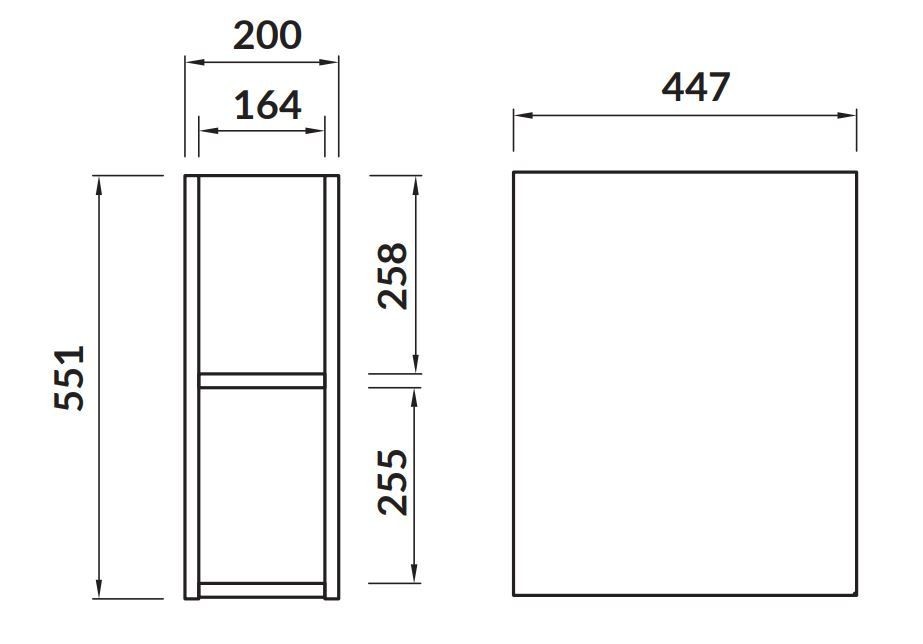 Závesná skrinka MODUO SLIM s univerzálnym otváraním dvierok pravá/ľavá, je menšia hĺbka než štandardné skrinky a je príkladom moderného kúpeľňového nábytku. Dvierka sú so skrytým úchytom a telo skrinky je pokryté lesklým bielym lakom, vo vnútri sú dve elegantné sklenené police. Dvierka sú vybavené tichým zatváracím systémom.