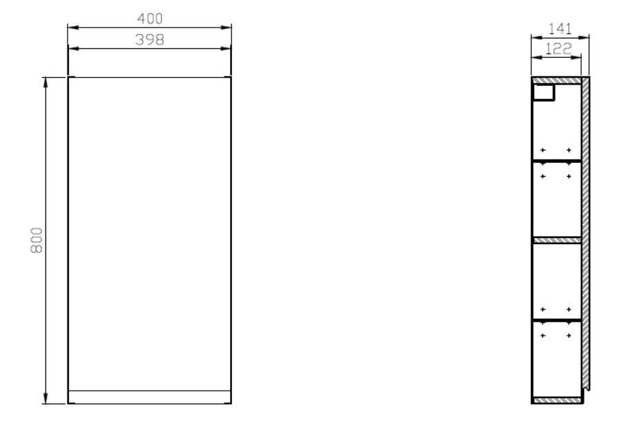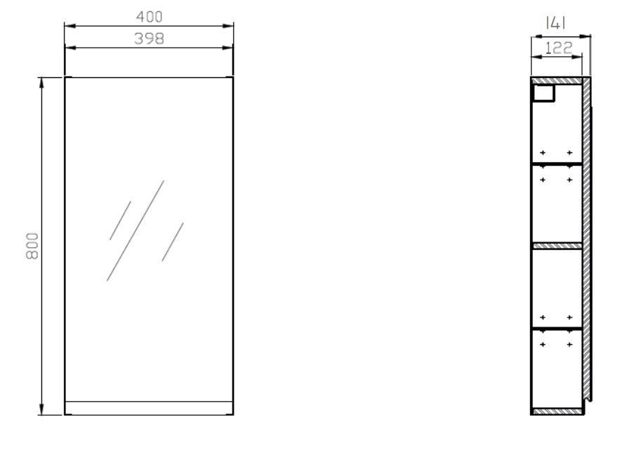 Zrkadlová skrinka MODUO SLIM s univerzálnym otváraním dvierok pravá/ľavá, je menšia hĺbka než štandardné skrinky a je príkladom moderného kúpeľňového nábytku. Dvierka sú so skrytým úchytom a telo skrinky je pokryté lesklým bielym lakom, vo vnútri sú dve elegantné sklenené police. Dvierka sú vybavené tichým zatváracím systémom.