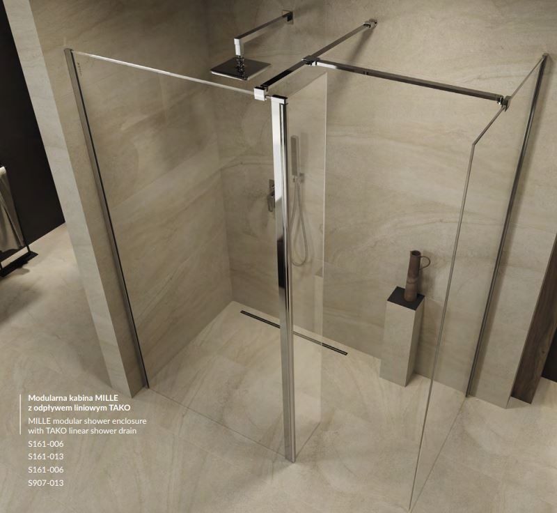 Ďalšou výhodou sprchových zásten WALK-IN MILLE je možnosť modulárnej kombinácie, kedy môžete zástenu zostaviť podľa svojich predstáv. Séria ponúka možnosť zostavenia s v prípade inštalácie voľne stojace Walk-in zásteny presklené z 3 strán, pevnú alebo pohyblivú doplňujúcou sprchovou zástenou.