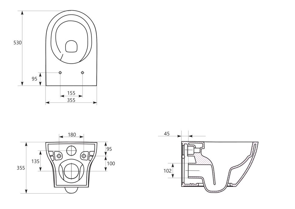 Závesné WC je z výroby pripravené na inštaláciu na podomietkovú montáž . Inak povedané, je potrebné, aby ste nádobku na splachovanie zamurovali vopred a pripravili si závitové tyče, na ktoré WC zavesíte. Rozteč otvorov pre závitové tyče je 18 cm.