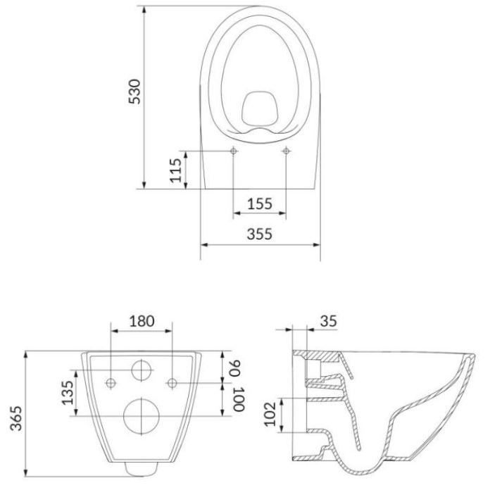 - WC MISA (cm): šírka 35,5; hĺbka 53; výška 36,5