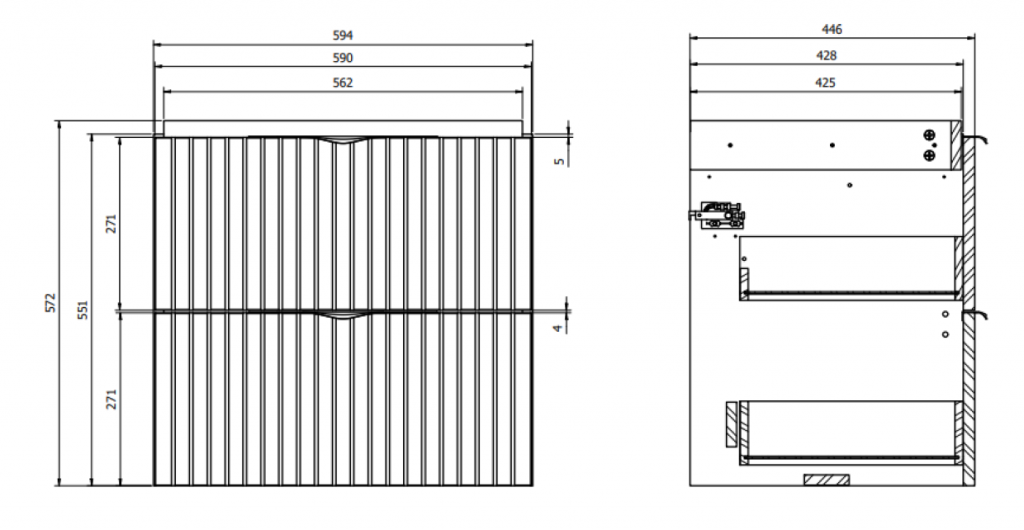 Súprava obsahuje umývadlovú skrinku TIRSO 60 vo verzii DSM a keramické umývadlo COMO 60 . Skrinka má dve priestranné zásuvky s plným dnom, ktoré poskytujú viac miesta na uloženie rôznych kúpeľňových doplnkov – preto odporúčame použiť priestorovo úsporný sifón. Čelo skrinky je vyrobené z drážkovanej MDF dosky s matnou povrchovou úpravou, ktorá jej dodáva jemnú textúru a elegantný vzhľad. Korpus skrinky je vyrobený z laminovanej drevotriesky, dostupnej aj v matnej povrchovej úprave.
