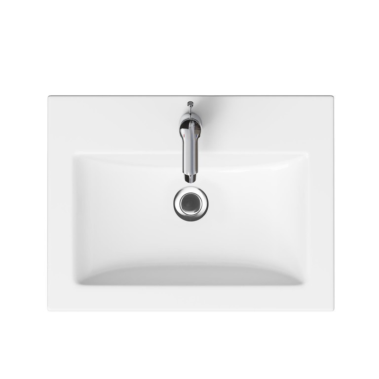 Obdĺžnikové keramické umývadlo COMO 60 má centrálny otvor pre armatúru a prepad a je možné ho doplniť keramickými alebo kovovými click-clack zátkami od firmy Cersanit.