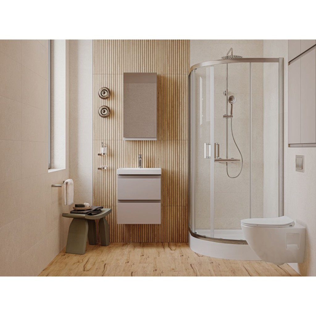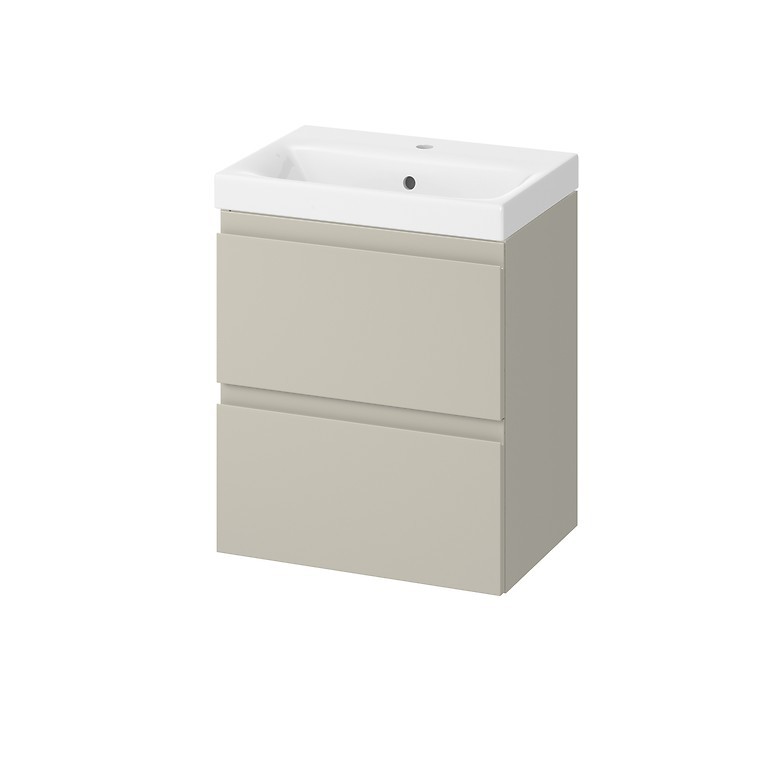 Súprava obsahuje umývadlovú skrinku MODUO SLIM v prevedení pre samomontáž a keramické umývadlo MODUO SLIM 50 . Vďaka zmenšenej hĺbke je možné sadu inštalovať aj v úzkych priestoroch. Čelo skrinky je vyrobené z MDF dosky v kašmírovej farbe s matnou povrchovou úpravou. Skrinka má dve zásuvky po celej dĺžke, pohodlné frézované úchytky a systém tlmenia. Odporúčame použiť priestorovo úsporný sifón.