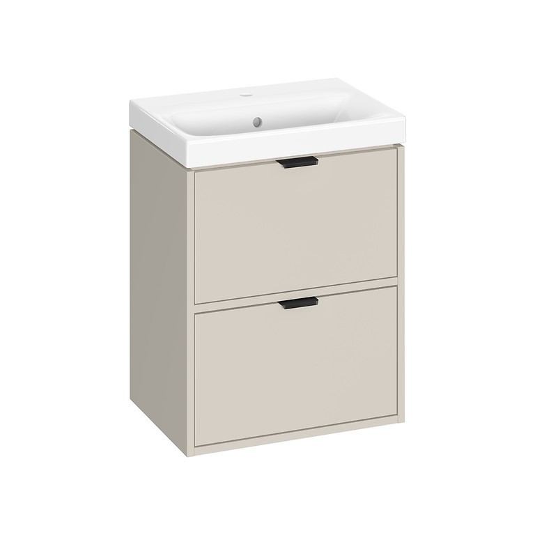 Skrinka s umývadlom ATRATO SLIM 50 v elegantnom odtieni kašmír dodá vašej kúpeľni moderný a sofistikovaný vzhľad. Vďaka závesnému prevedeniu pôsobí vzdušne a zároveň uľahčuje upratovanie podlahy. Vyrobená je z kvalitnej laminovanej drevotriesky s hrúbkou 16 mm, ktorá zaisťuje odolnosť voči vlhkosti a každodennému používaniu. Dve priestranné zásuvky s plným dnom poskytujú praktický úložný priestor na kozmetiku či čistiace prostriedky.