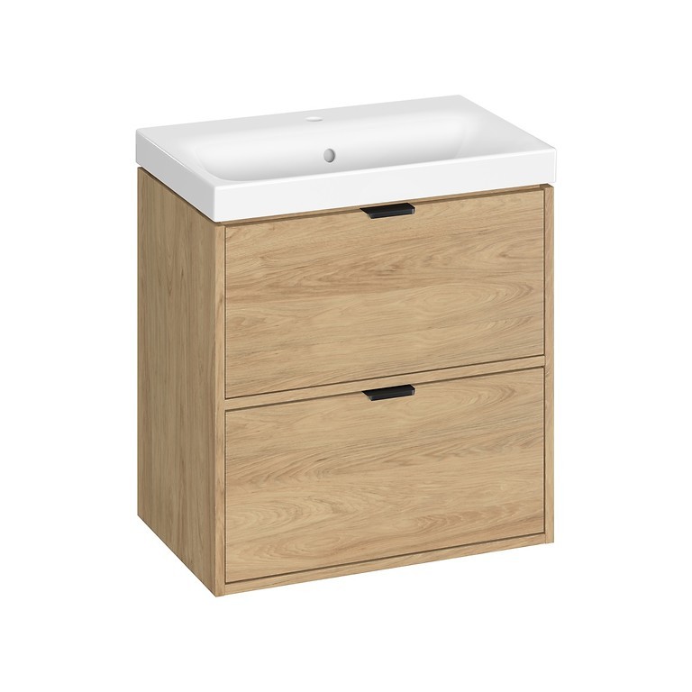 Skrinka pod umývadlo ATRATO SLIM 60 v dekore dub prináša do kúpeľne prírodný vzhľad a hrejivý charakter. Vďaka závesnému prevedeniu nezaberá miesto na podlahe a uľahčuje upratovanie. Dve priestranné zásuvky s plným dnom ponúkajú praktický úložný priestor pre každodenné potreby. Korpus aj čelá sú vyrobené z odolnej laminovanej drevotriesky. Skrinka je ideálna pre moderné aj klasické kúpeľne. Umývadlová skrinka s umývadlom SLIM je užším variantom klasických umývadlových skriniek, ideálna pre menšie kúpeľne alebo úzke priestory. Vďaka kompaktným rozmerom šetrí miesto bez toho, aby strácala na funkčnosti.