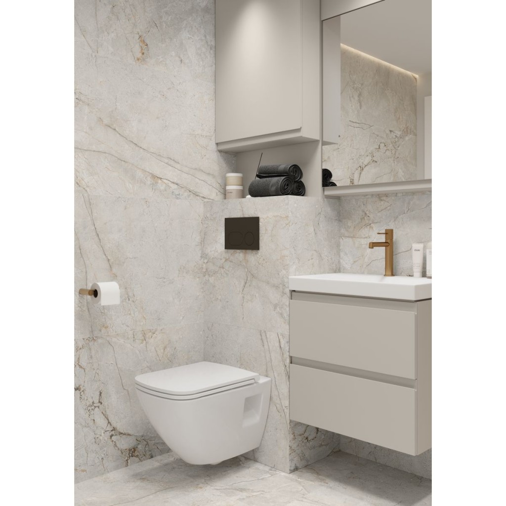 Kúpeľňová skrinka MODUO s umývadlom v modernom minimalistickom dizajne je vyrobená z kašmírovej lakovanej dosky s matnou povrchovou úpravou. Disponuje dvoma priestrannými zásuvkami s pohodlnými frézovanými úchytmi a systémom tlmeného dovierania pre vyšší komfort. Dodáva sa vo vyhotovení pre svojpomocnú montáž. Na optimálne využitie vnútorného priestoru odporúčame použitie priestorovo úsporného sifónu.