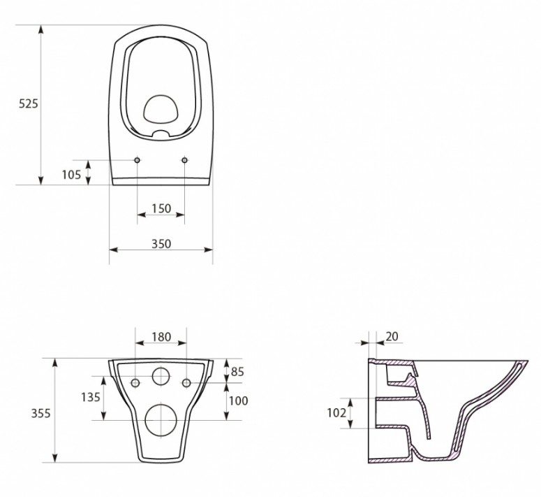 - pre závesné WC s pripojovacími rozmermi podľa EN 33 a presahom do 70 cm