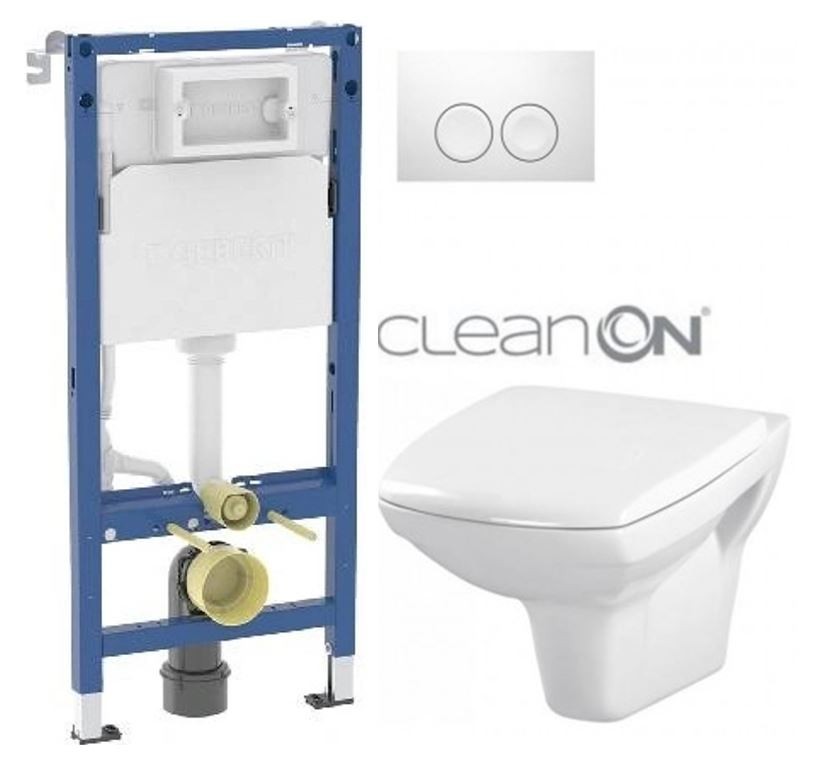 WC závesná misa CARINA NEW CleanOn elegantného vzhľadu s horizontálnym odpadom, funkciou splachovanie 2,5 / 5, 3 / 5l.