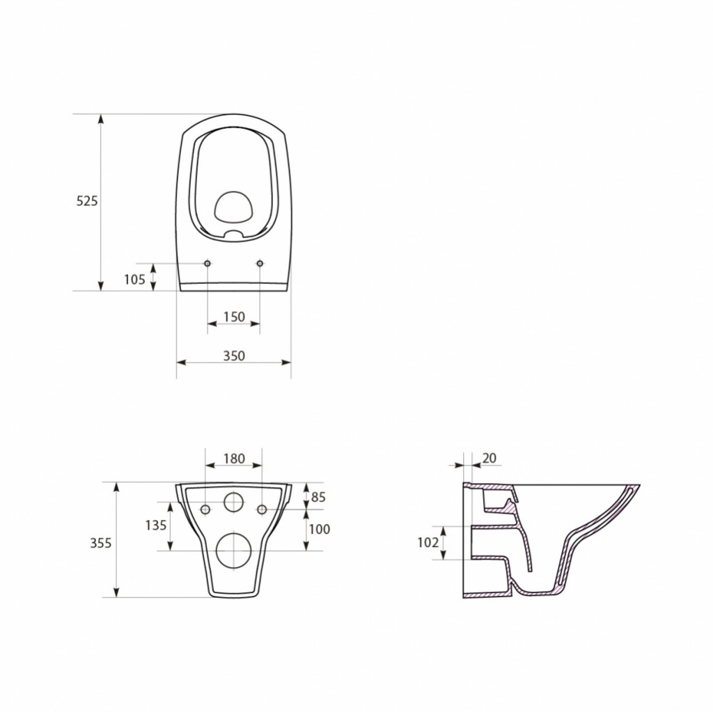 WC závesná misa CARINA NEW CleanOn elegantného vzhľadu s horizontálnym odpadom, funkciou splachovanie 2,5 / 5, 3 / 5l.