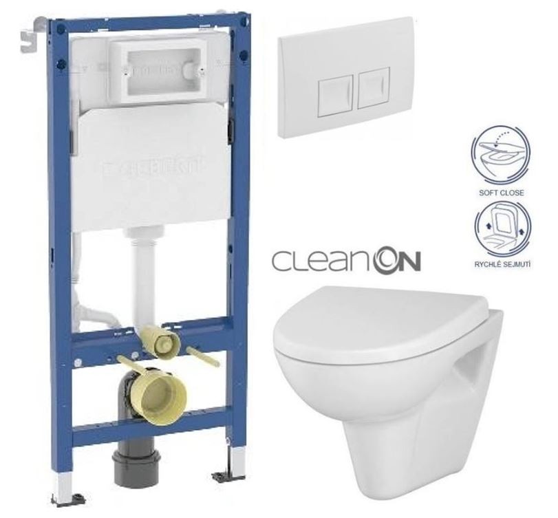 Závesná misa Parva Clean ON elegantného vzhľadu s horizontálnym odpadom. Funkcia splachovanie 2,5 / 5, 3 / 5l.