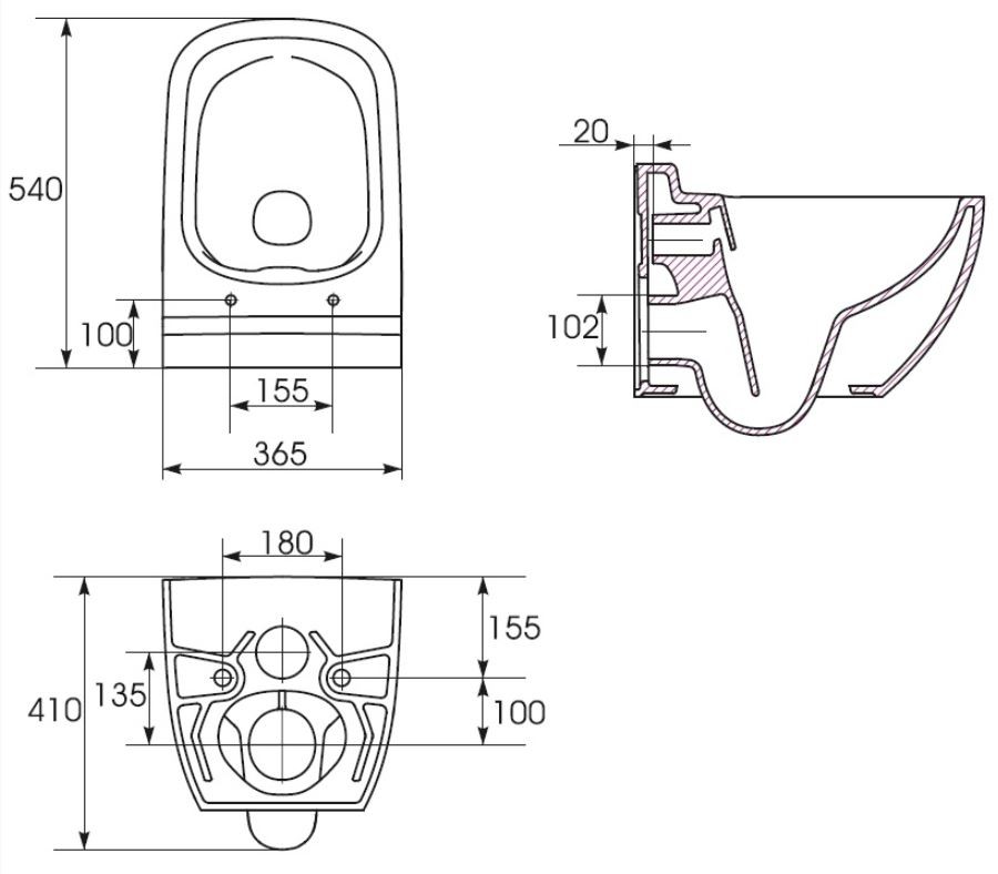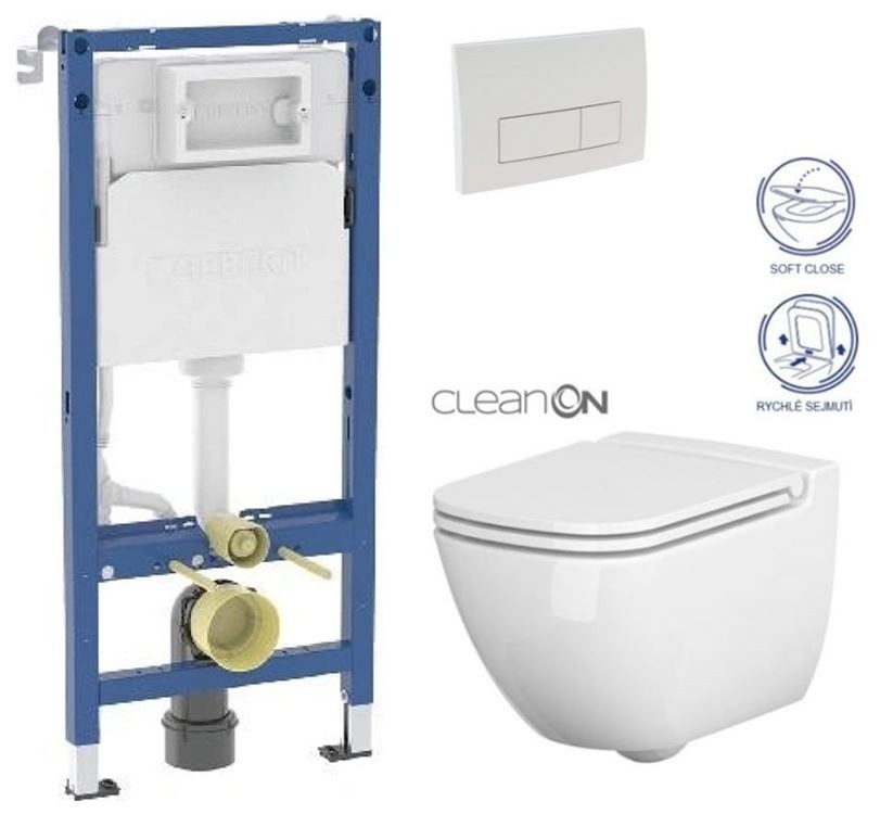 Závesná misa CASPIA NEW CLEAN ON / bez oplachového kruhu / so zadným odtokom, funkcia splachovanie 2 / 4l, 25, / 5l alebo 3 / 5l.