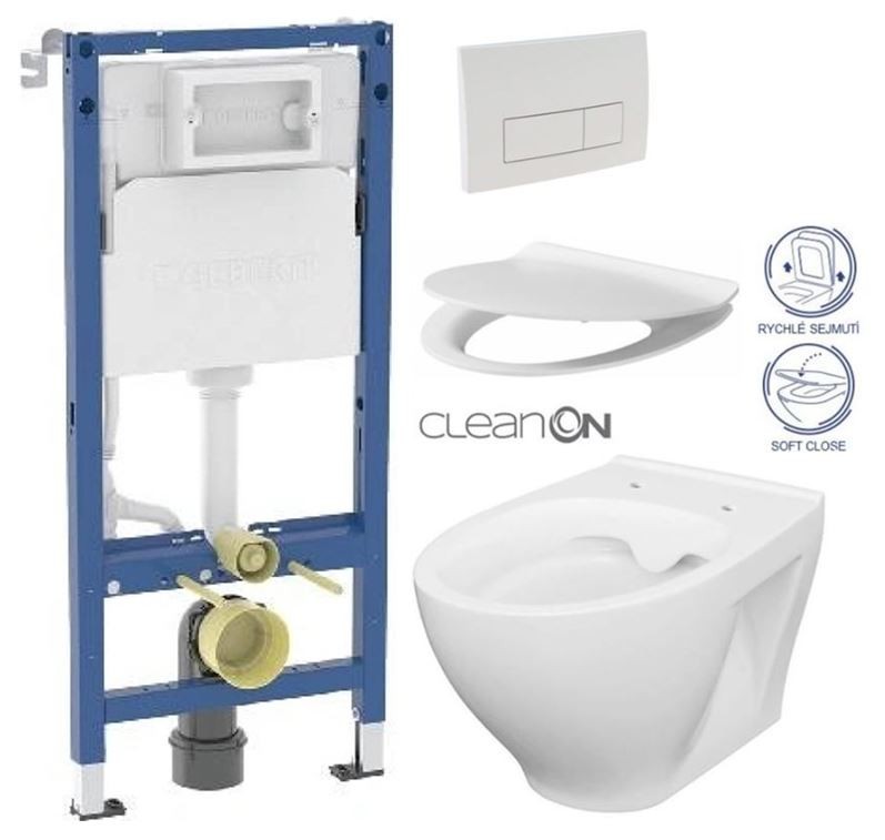 Oválna závesná WC misa módu s technológiou CleanOn / bez oplachového kruhu /, kde sa neshromžďují nečistoty ako v štandardných WC misách s klasickým uzavretým kruhom a ich údržba je jednoduchšie a hygienickejšie. WC misa má úsporný oplach vody 3 / 5l.