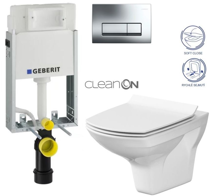 WC závesná misa CARINA NEW CleanOn elegantného vzhľadu s horizontálnym odpadom, funkciou splachovanie 2,5 / 5, 3 / 5l.