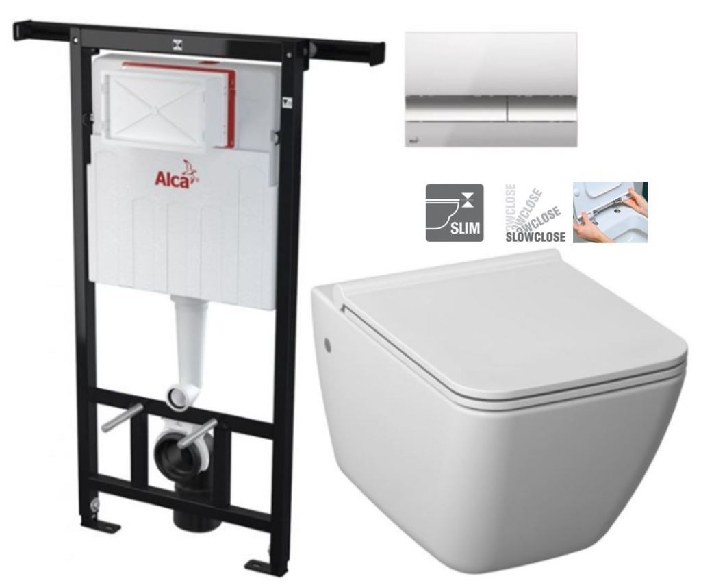 Pozor na výšku osi odpadu, ktorá je oproti bežným klozetům o 3 cm vyššie. Správne nastavenie vypúšťacieho ventilu v podomietkovom modulu je splachovacie množstvo 4,5 / 3l.