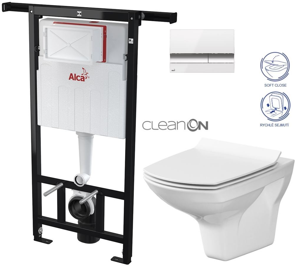 ALCA ALCA Jádromodul - predstenový inštalačný systém s bielym / chróm tlačidlom M1720-1 + WC CERSANIT CLEANON CARINA + SEDADLO (AM102/1120 M1720-1 CA3)