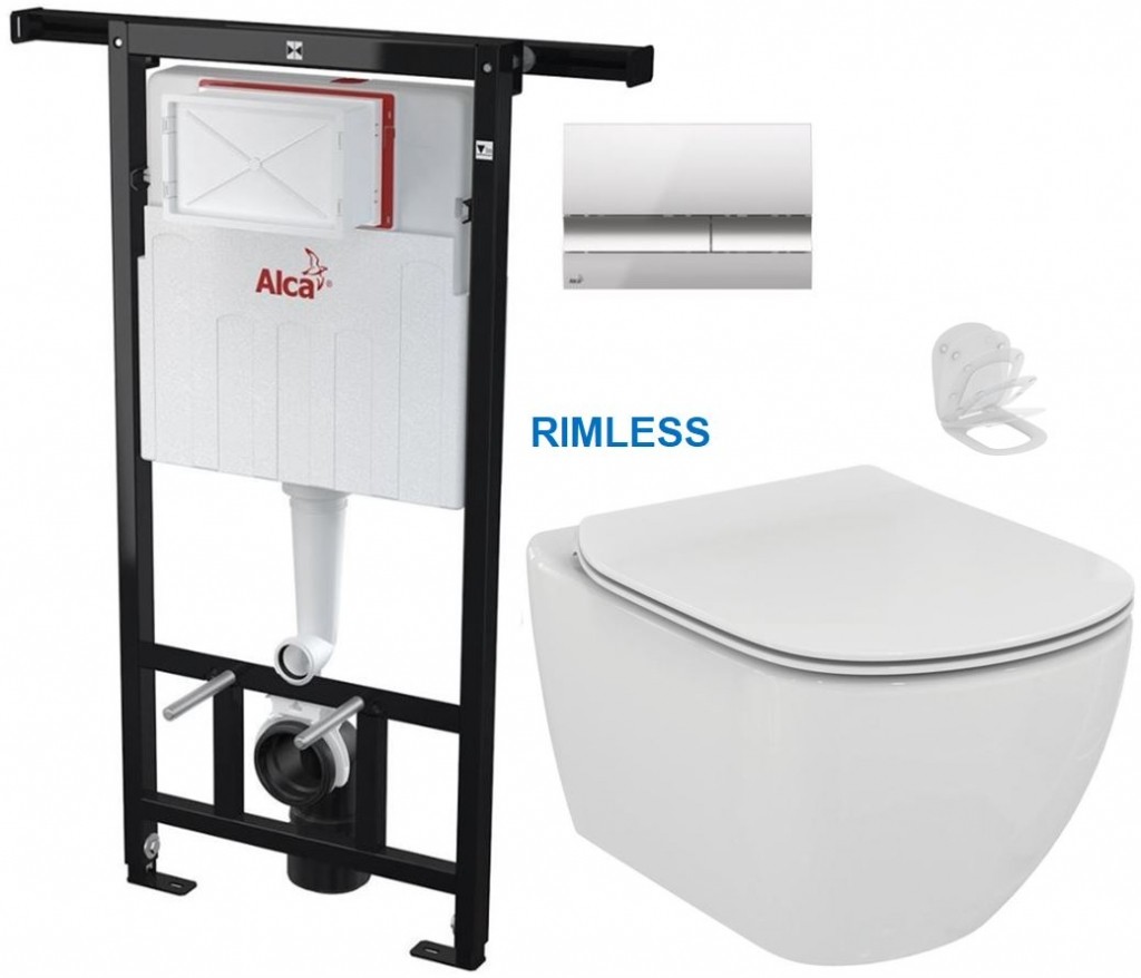 ALCA ALCA Jádromodul - predstenový inštalačný systém s chrómovým tlačidlom M1721 + WC Ideal Standard Tesi se sedlem RIMLESS (AM102/1120 M1721 TE2)