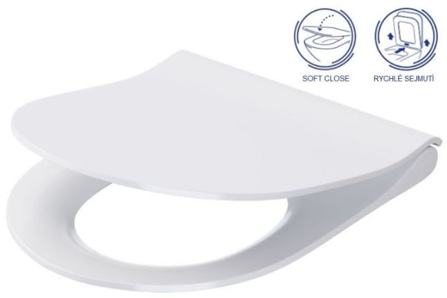 Tenké WC sedátko SLIM s pomalým zatváraním SOFT CLOSE, s jednoduchým odobratím a upevnením sedátka pomocou jedného tlačidla EASY OFF ONE BUTTON.