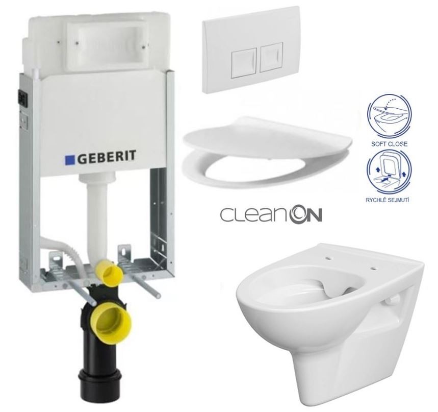 Závesná misa Parva Clean ON elegantného vzhľadu s horizontálnym odpadom. Funkcia splachovanie 2,5 / 5, 3 / 5l.
