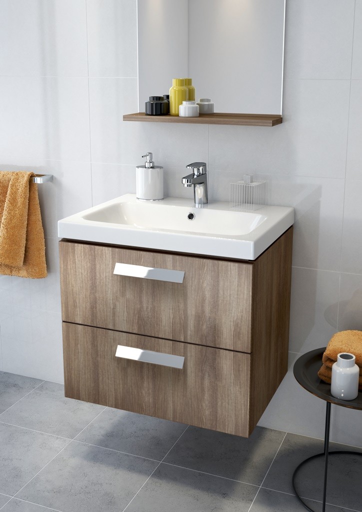 Závěsná skříňka MARINA s chromovými úchyty a tichým dovíráním zásuvek, včetně umyvadla COLOUR 60.