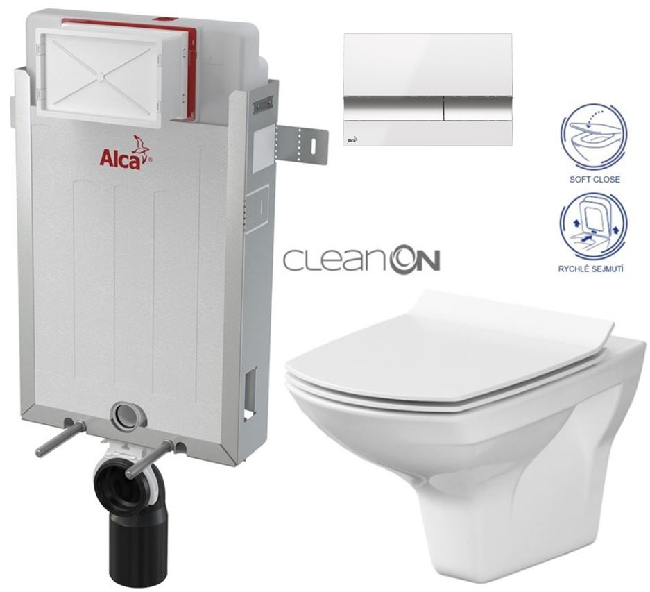 WC závesná misa CARINA NEW CleanOn elegantného vzhľadu s horizontálnym odpadom, funkciou splachovanie 2,5/5, 3/5l.