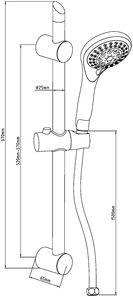 - Kovová sprchová tyč, dĺžka: približne 67 cm