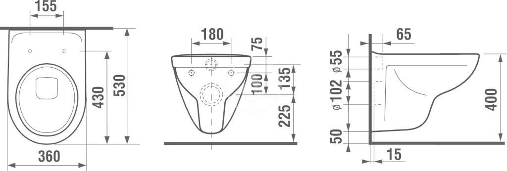Pre montáž závesného WC s pripojovacou roztečou 180 mm alebo 230 mm
