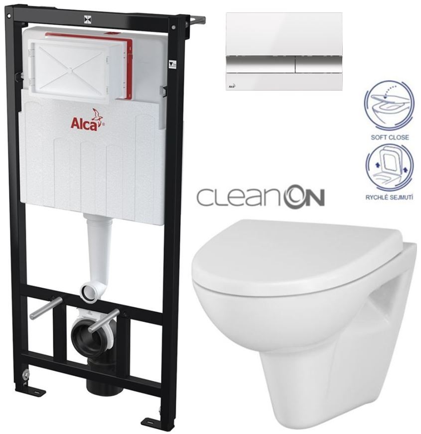 ALCA Sádromodul - predstenový inštalačný systém s bielym / chróm tlačidlom M1720-1 + WC CERSANIT CLEANON PARVA + SEDADLO (AM101/1120 M1720-1 PA1)